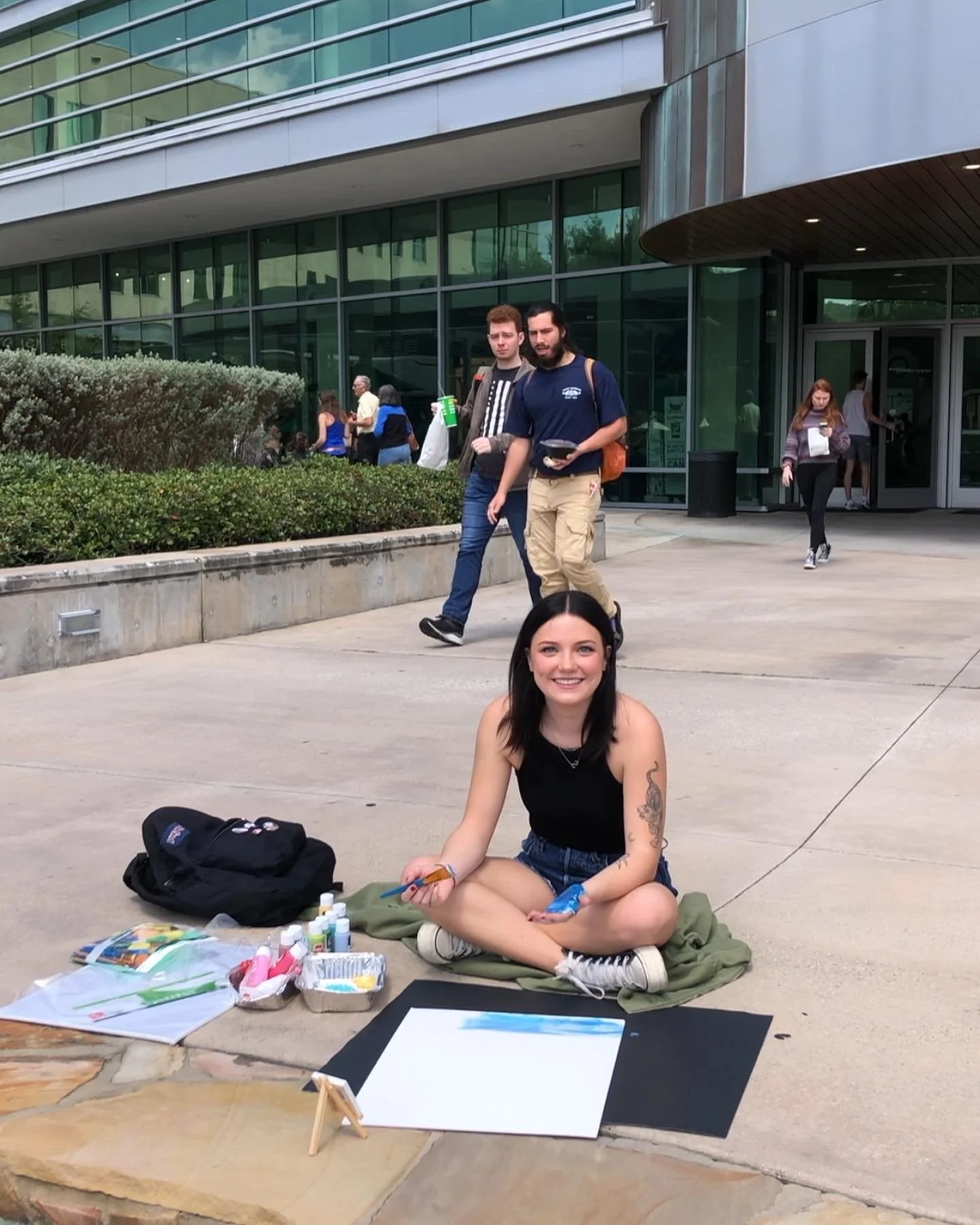This photo was taken during a performative art piece I did for my concepts and practices class. I painted with my hands in front of a busy building on campus. As you can see, I got mixed reactions.